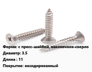 Саморез с пресс-шайбой, наконечник-сверло D=3.5 L=11 оксидированный
