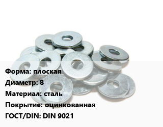 Шайба плоская D=8 сталь оцинкованная ГОСТ: DIN 9021, шт, кузовная цена По запросу где купить, условия доставки в Атырау и Атырауской области области