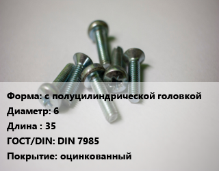 Винт с полуцилиндрической головкой 6х35 DIN 7985 оцинкованный