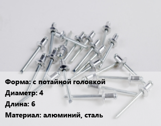 Заклепка с потайной головкой 4х6 алюминий, сталь
