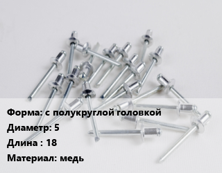 Заклепка с полукруглой головкой 5х18 медь, упаковка 100 шт цена от 173.36 Тг / шт, где купить, условия доставки в Атырау и Атырауской области области