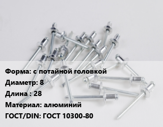 Заклепка с потайной головкой 8х28 алюминий ГОСТ: ГОСТ 10300-80