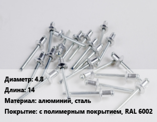Заклепка 4.8х14 алюминий, сталь с полимерным покрытием, RAL 6002
