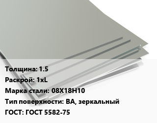 Лист нержавеющий 1.5 1хL Сталь: 08Х18Н10 Тип:BA, зеркальный ГОСТ 5582-75, х/к цена от 331 500 Тг / т, где купить, условия доставки в Атырау и Атырауской области области
