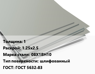 Лист нержавеющий 1 1.25х2.5 Сталь: 08Х18Н10 Тип:шлифованный ГОСТ 5632-83