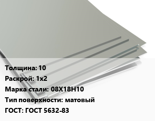 Лист нержавеющий 10 1х2 Сталь: 08Х18Н10 Тип:матовый ГОСТ 5632-83